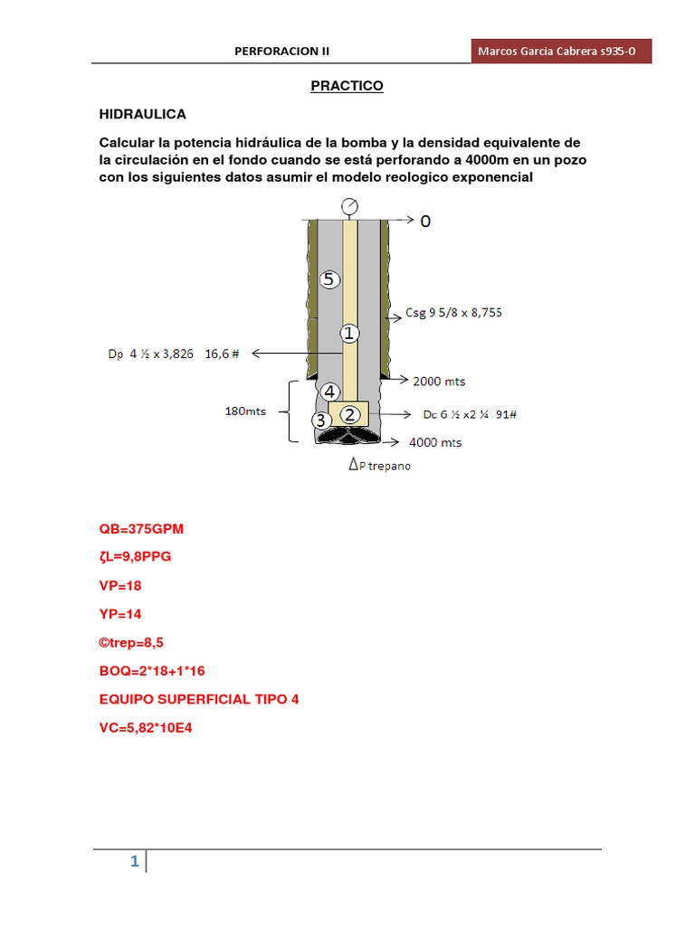 Hidraulica De Perforacion Ejercicio Practico Perfo 2 Yo Pdf Pdf Ingenieria Quimica Mecanica De Fluidos